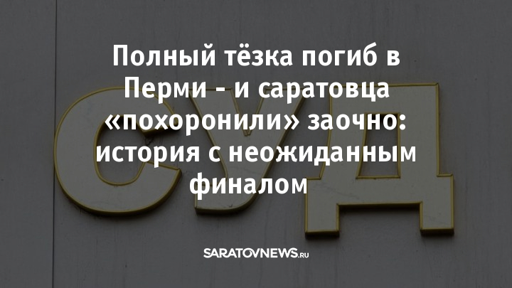 Главная / Происшествия / Полный тёзка погиб в Перми - и саратовца «похоронили» заочно: история с неожиданным финалом