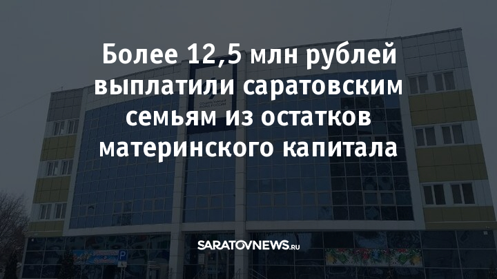 С сентября 2024 года саратовские семьи забрали более 12,5 млн рублей из остатков материнского капитала. Такую возможность предоставило региональное отделение Социального фонда России. Рассказываем, кто может получить выплату и как это сделать.
