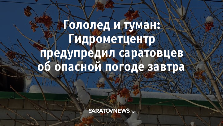 В Саратове погодные условия будут схожими: облачно с прояснениями, ночью и утром возможны небольшие осадки, днем преимущественно без них. Ожидается туман и гололед. Ветер западный, 5–10 метров в секунду с порывами до 14 метров. Ночная температура в городе составит -3…-5 градусов, дневная — 0…-2 градуса.