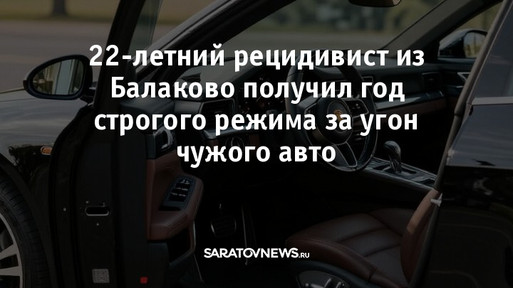 22-летний житель Балаково, уже имевший судимость, отправится в колонию строгого режима на год за угон автомобиля. Такое решение вынес суд при поддержке прокуратуры города. Об этом сообщили в надзорном ведомстве.