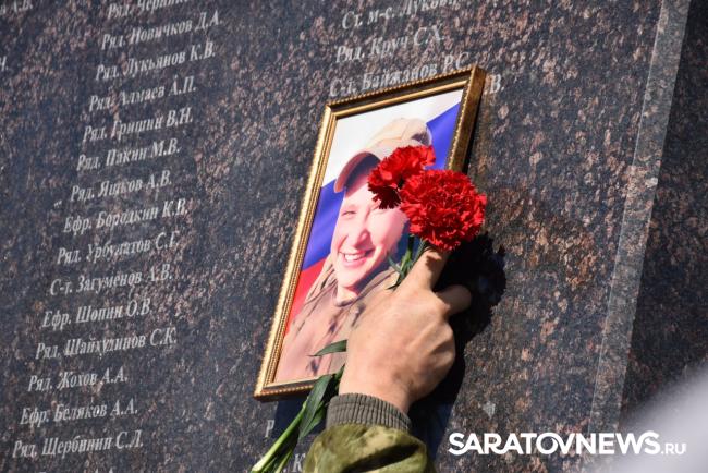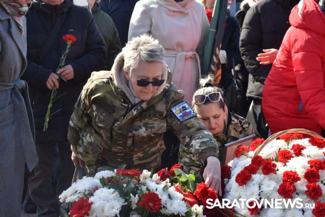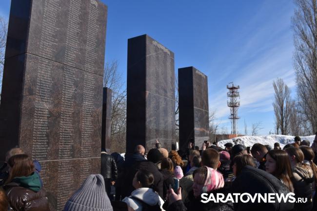 В Саратове сегодня, 12 марта, прошла церемония памяти погибших участников специальной военной операции. Имена 200 военнослужащих нанесли на колонны мемориала «Землякам, погибшим в локальных войнах» в Парке Победы на Соколовой горе.