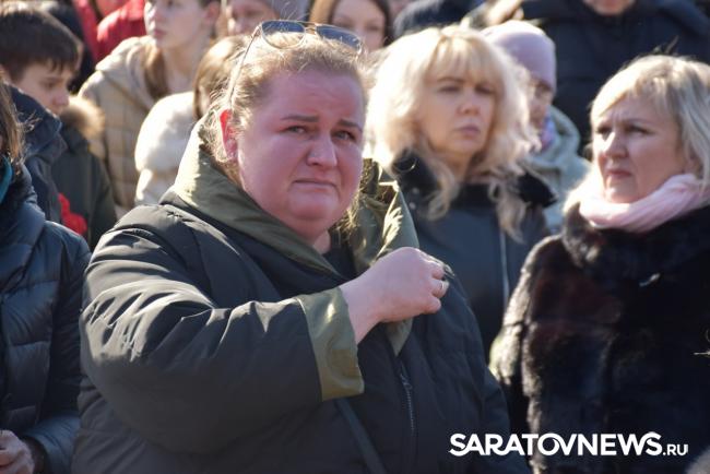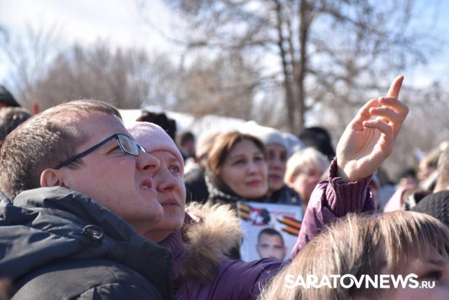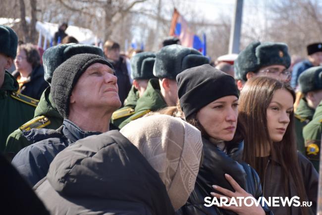 Почтить память бойцов пришли их родные и близкие, волонтеры, общественники, а также представители власти. Многие держали в руках портреты погибших героев. Среди официальных лиц на церемонии присутствовали губернатор Роман Бусаргин, его заместитель Михаил Исаев, глава Саратова Игорь Молчанов и руководитель Энгельсского района Максим Леонов.