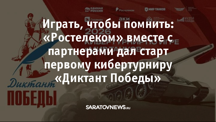 Началась регистрация на первый киберспортивный турнир по популярной онлайн-игре «Мир танков», приуроченный к одноименной просветительской акции «Диктант Победы — 2026». Организаторы соревнования — «Ростелеком», партия «Единая России», Российское военно-историческое общество (РВИО), игровая студия «Леста», Федерация компьютерного спорта России (ФКС), Агентство креативных индустрий (АКИ) и фонд «Сколково». В 2025 году в «Диктанте Победы» приняли участие 2,75 млн человек из 97 стран мира.