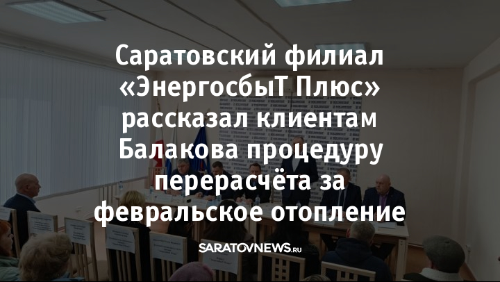 Директор Саратовского филиала «ЭнергосбыТ Плюс» Игорь Лодянов и специалисты компании встретились с жителями Балакова. Они пояснили клиентам порядок перерасчёта за отопление по итогам февраля. Энергетики идут навстречу жителям и, несмотря на отсутствие актов от управляющих организаций, выполнят перерасчёт за тепло в беззаявительном порядке.