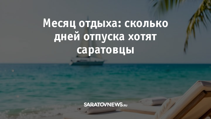 Большинство жителей Саратова мечтают об отпуске длиной в месяц. К такому выводу пришли эксперты сервиса SuperJob, опросившие экономически активных горожан. Лишь единицы готовы ограничиться коротким отдыхом: всего 4% респондентов назвали идеальным сроком 10 дней. Две недели устроят 14% опрошенных, три — 20%.
