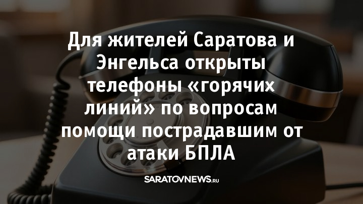 В Саратове и Энгельсе открыты телефоны «горячих линий» для оказания помощи пострадавшим от атаки БПЛА. Об этом в своих телеграмм каналах сообщили Игорь Молчанов и Максим Леонов.