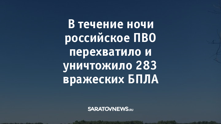 С 23.00 20 марта до 7.00 21 марта дежурные средства ПВО перехватили и уничтожили 283 вражеских БПЛА самолетного типа над российскими регионами. Об этом сообщает Минобороны РФ.