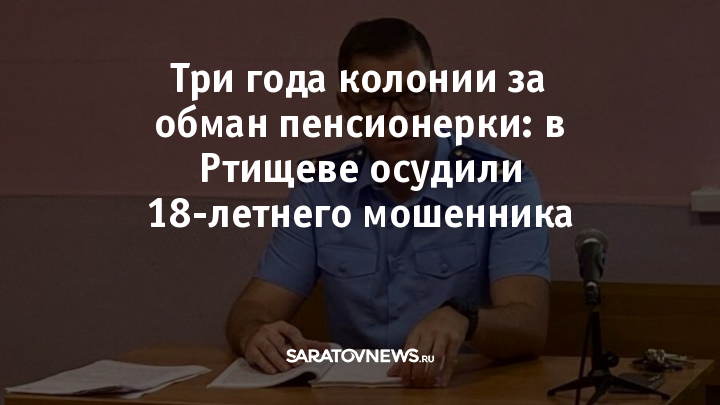 В Ртищеве суд отправил в колонию 18-летнего жителя Адыгеи, который выманил у 84-летней женщины 1,1 млн рублей. Об этом сообщает прокуратура Саратовской области.