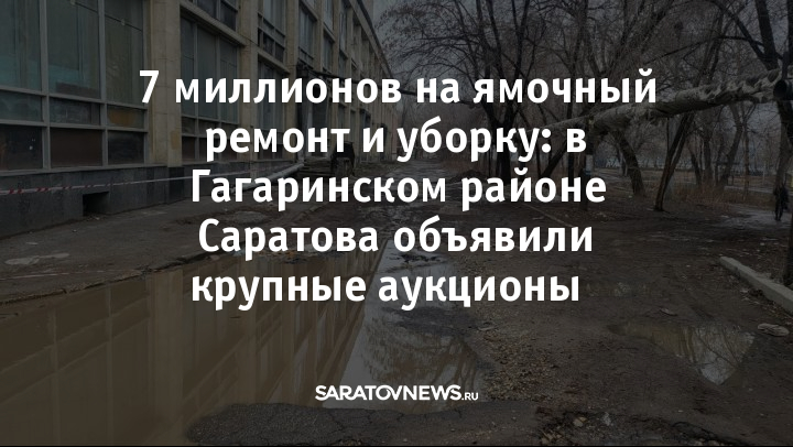 Департамент Гагаринского района Саратова объявил аукционы на работы по ремонту и содержанию автомобильных дорог и тротуаров. Информация об этом появилась на официальном сайте Госзакупок.