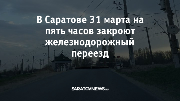 31 марта с 11:00 до 16:00 железнодорожный переезд на 259-м километре перегона Тарханы – Липовский работать не будет. Он находится в Гагаринском районе, на дороге к посёлку Расловка. Причина — плановый ремонт. Об этом сообщает пресс-служба Приволжской железной дороги.