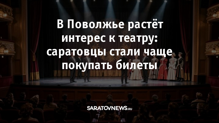 Жители Приволжского федерального округа, включая Саратовскую область, стали чаще покупать билеты на спектакли. Зимой 2026 года спрос на театральные постановки в регионе вырос на 14% по количеству проданных билетов и на 5% по деньгам. Данные подготовили эксперты KASSIR.RU и «Авито Работы» ко Всемирному дню театра.