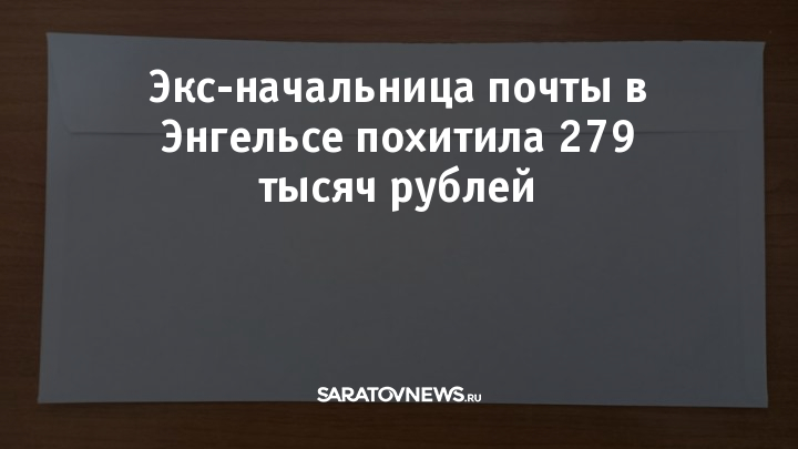Суд в Энгельсе вынес приговор 55-летней экс-руководительнице почтового отделения. Женщину признали виновной в присвоении денег из кассы — ущерб превысил 279 тысяч рублей. Об этом сообщает прокуратура Саратовской области.