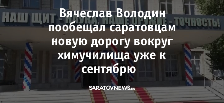 В Саратове к сентябрю проложат новую дорогу вокруг химучилища. Об этом сообщил председатель Госдумы Вячеслав Володин.
