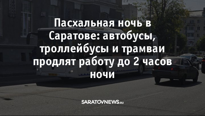 В Саратове в ночь с 11 на 12 апреля продлят работу общественного транспорта до 02:00. Такое решение принял Комитет по транспорту администрации города.