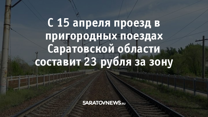 Пассажиры электричек в Саратовской области с середины апреля платят за билет в пределах одной зоны 23 рубля. Об этом сообщает пресс-служба Приволжской железной дороги.