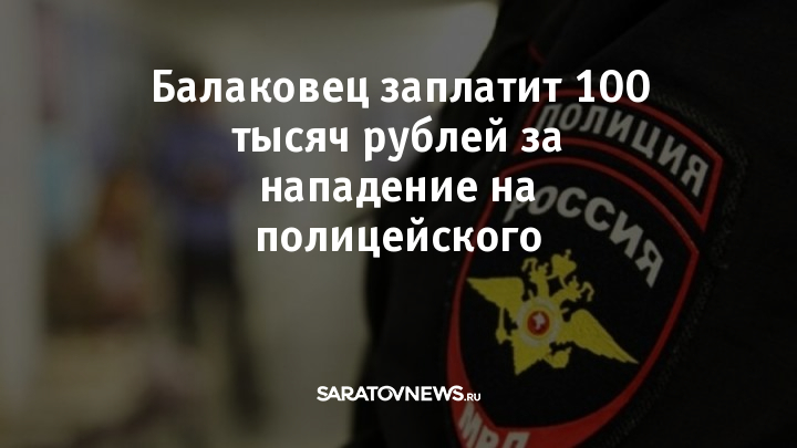 44-летний житель Балаково получил штраф в 100 тысяч рублей за то, что ударил сотрудника полиции. Инцидент произошёл в ночь на 7 декабря во дворе на улице Чапаева.