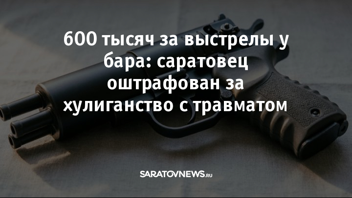 33-летний житель Саратова заплатит 600 тысяч рублей штрафа за стрельбу из травматического пистолета у бара в Кировском районе. Такое решение вынес суд после рассмотрения уголовного дела. Об этом сообщает прокуратура региона.