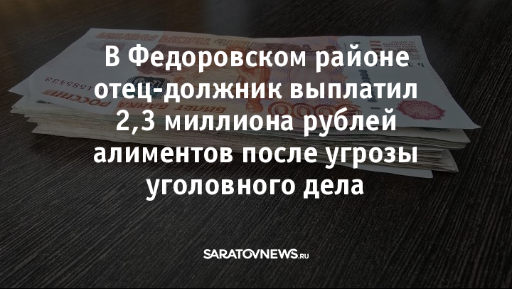 В Федоровском районе Саратовской области нерадивого отца заставили выплатить крупный долг по алиментам. Об этом сегодня сообщили в региональном управлении Федеральной службы судебных приставов.