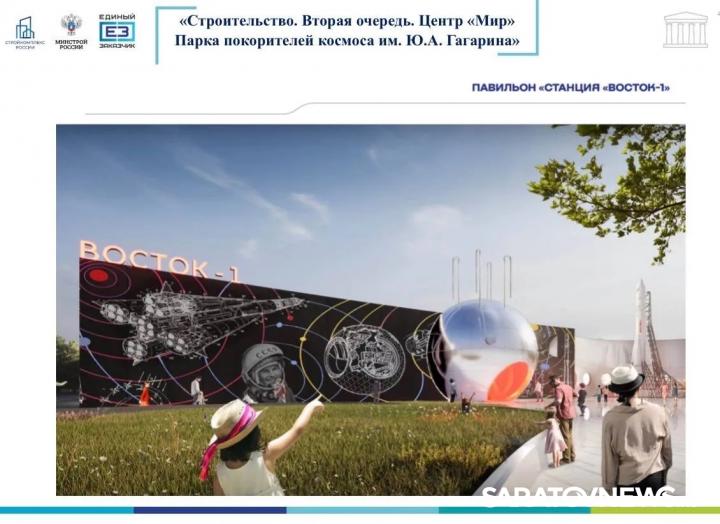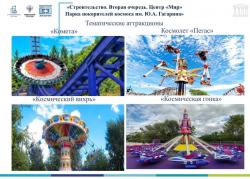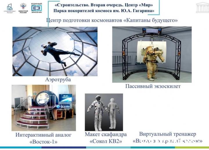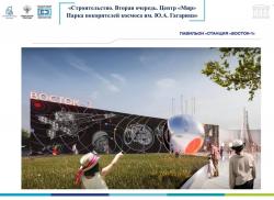 В рамках второго этапа на территории парка появятся несколько ключевых объектов. Многофункциональный образовательный центр «Мир» станет площадкой для занятий школьников и студентов. Павильон «Восток-1» расскажет историю первого полёта человека в космос. А центр подготовки космонавтов «Капитаны будущего» позволит молодым людям попробовать себя в роли исследователей Вселенной. Дополнят ансамбль тематические объекты, посвящённые вехам освоения космоса и перспективам отрасли.