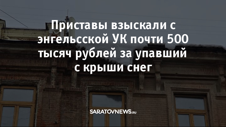 Судебные приставы Энгельсского района взыскали с управляющей компании крупную сумму за ущерб, причинённый снегом, упавшим с крыши на автомобиль. Об этом сообщили в ГУФССП по Саратовской области.