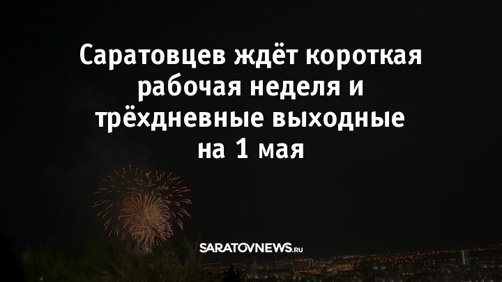 Саратовцев, работающих по пятидневной рабочей неделе, ждут трёхдневные выходные в честь Праздника Весны и Труда. 1 мая выпадает на пятницу, а 2 и 3 мая — суббота и воскресенье. Таким образом, отдыхать они будут 1, 2 и 3 мая.