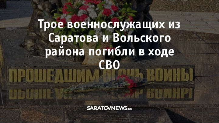 В ходе специальной военной операции погибли ещё трое жителей Саратовской области. Информацию подтвердили администрации города Саратова и Вольского района.