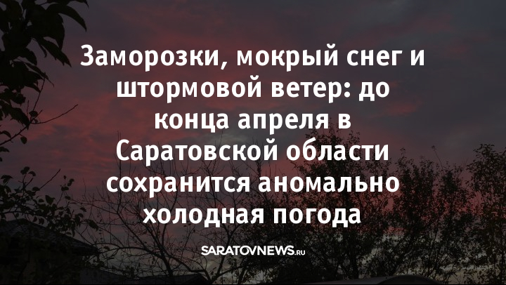 До конца апреля в Саратовской области сохранится аномально холодная погода. Температура воздуха сейчас на 1–4 градуса ниже климатической нормы, сообщают синоптики.
