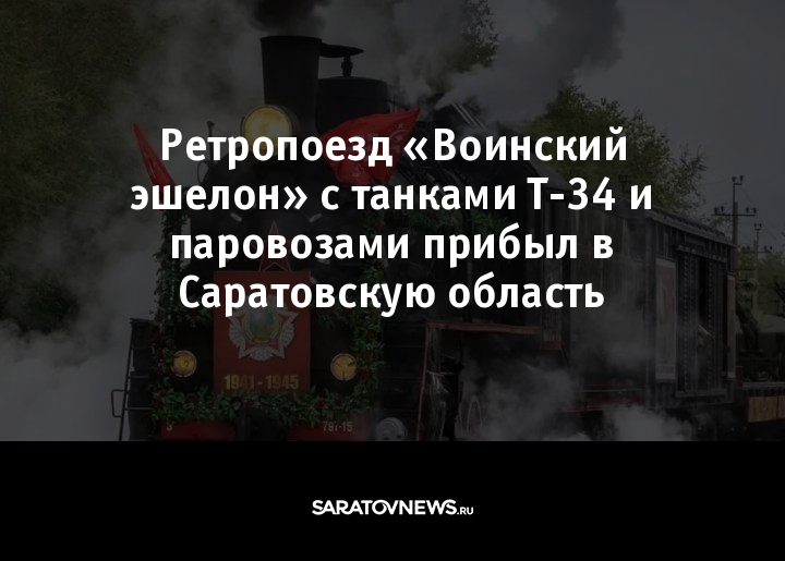 Ретропоезд «Воинский эшелон» начал курсирование по Саратовской области. Первыми уникальный историко-патриотический проект увидели жители посёлка Сенной — выставка прошла 27 апреля на станции Сенная, сообщили в министерстве транспорта области.