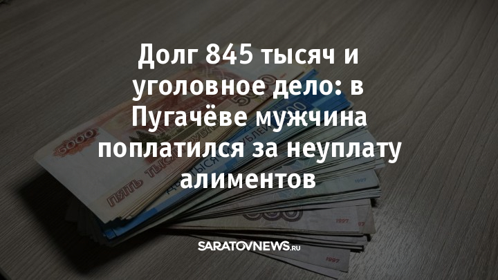 В ОСП по Пугачёвскому и Ивантеевскому районам находилось исполнительное производство о взыскании алиментов с 33-летнего жителя Пугачёва. По решению суда он был обязан ежемесячно перечислять часть дохода на содержание 9-летней дочери. Однако мужчина пренебрегал обязанностями, и у него образовался долг в размере 845 тысяч рублей.
