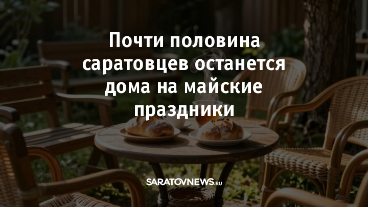 47% жителей Саратова планируют провести короткие майские выходные дома. Такие данные показал опрос сервиса SuperJob, в котором участвовали работающие горожане.