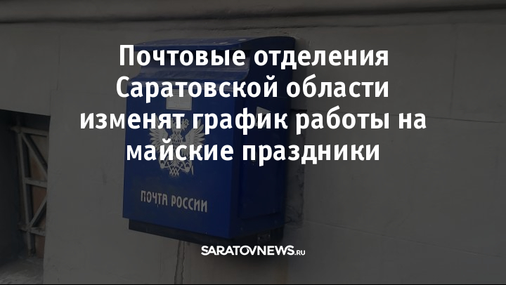 Почтовые отделения Саратовской области перейдут на особый режим работы в связи с майскими праздниками. Об этом сообщили в компании.