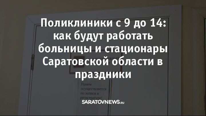 Министерство здравоохранения Саратовской области опубликовало график работы медицинских организаций с 1 по 3 мая.