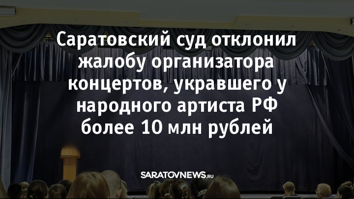 Первый кассационный суд общей юрисдикции в Саратове оставил без изменений приговор Дмитровского городского суда Московской области в отношении генерального директора компании, представлявшей интересы народного артиста РФ. Мужчина был осуждён за хищение более 10 миллионов рублей, сообщили в пресс-службе суда.
