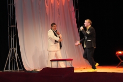 По окончании спектакля зрителей ждал сюрприз. Станислав Садальский объявил, что в зале находится певец Сергей Пенкин, и попросил его спуститься на сцену. Причем Садальский сообщил, что если его выступление стоит пять тысяч долларов, то Пенкина аж пятнадцать. Мол, всем присутствующим крупно повезло. Сергей, у которого накануне прошел сольный концерт в Саратове, в знак благодарности саратовцам за гостеприимство подарил еще один музыкальный подарок. Стас Садальский ответил стихотворением.