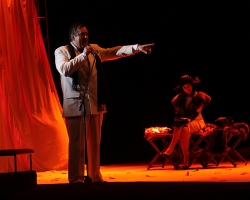 13 марта зал театра оперы и балета был практически полон. Звездный состав, современный житейский сюжет о чудо-бизнесмене. Но, для метафоры, он занимается продажей валенок. Когда валенки называют валенками, он впадает в бешенство и требует, чтобы их называли «лучшая в мире модель зимней коллекции». У него есть жена и любовница — девушка-психолог, которую он таскает годами по командировочным гостиницам, ибо других вариантов для встреч у них нет. Немудрено, что молодую красивую женщину не устраивает такая жизнь на колесах без какой бы то ни было перспективы, и она уходит от нашего героя.