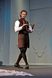 — Моя маленькая роль в «Мнимом больном». Анатолий Праудин, режиссер этого спектакля — чрезвычайно тонкий художник. Он поставил «Гальеру» — один из самых пронзительных спектаклей тюзовского репертуара. Он чувствует текст, чувствует актера. Мало кто из приезжих режиссеров так умно, деликатно и с такой готовностью идет на диалог с актером. Праудин именно таков.