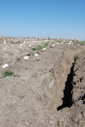Замышлялось новое кладбище как вполне приличное место захоронений. Даже симпатичную часовенку возвели. Начали отстраивать забор, проложили часть асфальтированных дорог между участками первых захоронений, поставили даже общественный туалет (правда, всего один на предполагаемые 173 гектара нового вечного покоя, сейчас «освоено» 40). Появились бочки с водой для полива. И — все. Дальше, видимо, начался привычный российский бардак, который прямо-таки расцветает, как репейник, из-за отсутствия контроля со стороны властей и общественности.