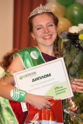 Ведущие, моделируя ситуации, с которыми девушки могут столкнуться на работе и в жизни, предлагали, не задумываясь, принимать решения. Надо сказать, красавицы здесь ярко продемонстрировали закалку Сбербанка. Ведь, как известно, при работе с клиентами, которые, безусловно, всегда правы, принимать решение порой необходимо за доли секунды. Так что с этим заданием участницы справились без особых проблем. Победительнице испытания достался титул «Мисс Оригинальность». Победа в этой номинации решением жюри была отдана Валерии Корниенко — ведущему инспектору отдела безопасности. Ну и наконец, третий этап — «Домашнее задание», по условиям которого девушки должны были назвать пять причин, почему они любят Сбербанк, и столько же — почему его не любят. Лучшая удостаивалась победы в номинации «Мисс Очарование». Здесь участниц в выборе средств никто не ограничивал. Конкурсантки признавались банку в любви в песнях, читали ему стихи, танцевали. Любопытно, что большинство из них, называя причины недовольства местом работы, ругали дресс-код, обязавший их носить униформу и забыть о любимых вещах гардероба. Звание «Мисс Очарование» было присуждено Светлане Тервовой — контролеру-кассиру. Право определить победительницу в еще одной номинации было предоставлено болельщикам — «Приз зрительских симпатий». Выбирала лучшую публика посредством SMS-голосования. И ею также стала Светлана Тервова. Справедливо будет отметить, что зрители в зале не отсиживались. Болели активно, буквально оглушая своих любимец аплодисментами. Ведущие ввели еще одну номинацию, специально для болельщиков — «Приз симпатии ведущих». Обладательницей этого титула стала четырехлетняя Елизавета Нарыкина.