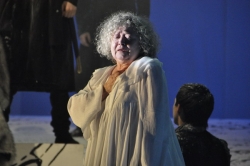 Единственное, что изменил в своем масштабном спектакле Адольф Шапиро, — это финал. Вместо текста из «Капитанской дочки» он взял цитату из допроса Пугачёва. «Богу было угодно наказать Россию через мое окаянство». На весь экран проецируется изображение Пугачёва — лохматая голова, полуприкрытые глаза разбойника... До казни? После? Известно, что бунтовщика, объявившего себя божьим помазанником, четвертовали. Причем на Болотной площади. Изображение исчезает, по экрану бегут строки из «Бориса Годунова»: «Народ безмолвствует».