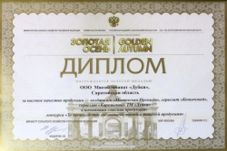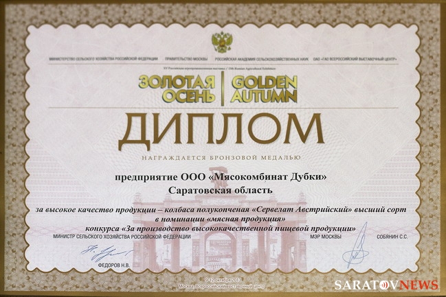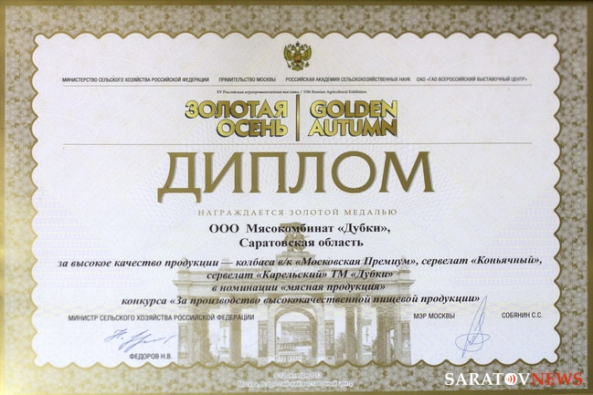 Продукция мясокомбината «Дубки» — это высокое качество! К такому выводу единодушно пришли компетентные члены жюри всероссийской агропромышленной выставки «Золотая осень-2013». Это главный сельскохозяйственный форум России и одновременно крупнейшая международная площадка для обсуждения вопросов продовольственной безопасности нашей страны. Награды, полученные в конкурсах «Золотой осени», из года в год означают для отечественных производителей сельхозпродукции признание высочайшего профессионализма, качества продукции и ее соответствия требованиям мирового уровня.