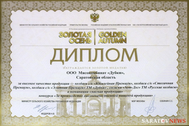 «Золотая осень-2013» принесла саратовскому мясокомбинату богатый урожай — 7 золотых наград за качество!