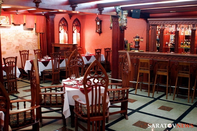 Во-первых, здесь отлично готовят, а во-вторых, здесь очень стильные интерьеры. Стоит открыть массивную деревянную дверь, как из века настоящего вы попадаете в далекое прошлое — рыцарскую Германию с ее обычаями и порядками и с порога начинаете чувствовать немецкую основательность и стабильность во всем. Оставив саратовскую суету за дверью, вы оказываетесь в теплой и уютной атмосфере. Тяжелая деревянная мебель, каменные своды, кованые перила, факелы, подвешенные над камином, витражи и зеркальный мраморный пол перенесут вас лет на 300 назад, когда пиво было густым и тягучим, а еда!... Но, несмотря на то что дизайн помещения по-немецки основателен и строг, здесь очень и очень уютно: мягкий свет ламп и свечей, приглушенная музыка делают свое дело.