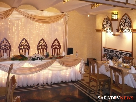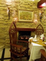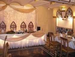 Первый зал оформлен в стиле готического рыцарского замка с витражами, гобеленами и тяжелой деревянной мебелью. Здесь удобно проводить корпоративные вечеринки, семейные торжества, рассчитанные в среднем на 30-40 человек.