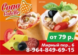 Конус из итальянского теста с томатами и паприкой, наполненный свежайшей начинкой,сыром и соусом, и запеченный в специальной печи до хрустящей корочки.