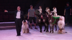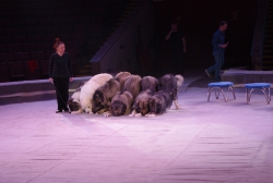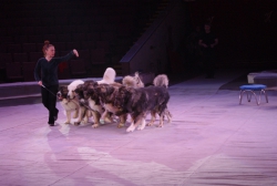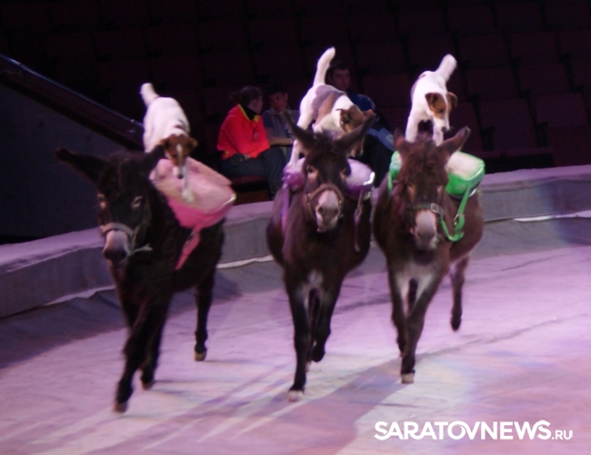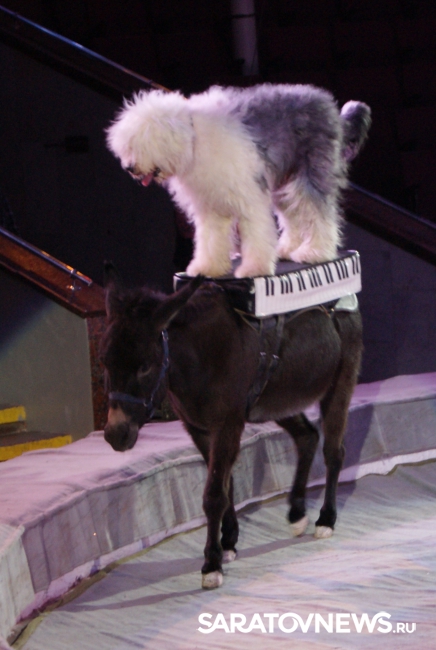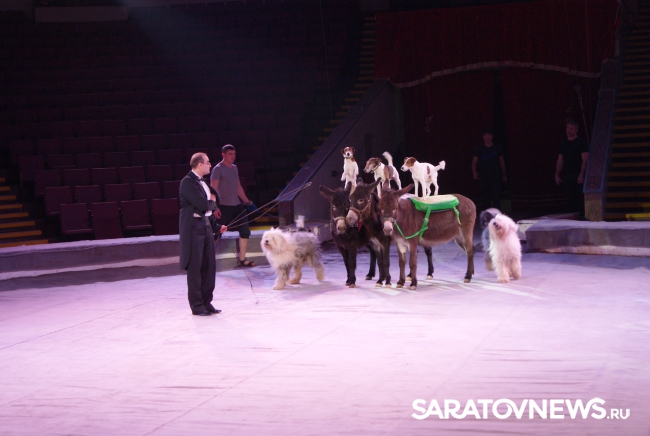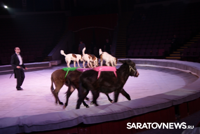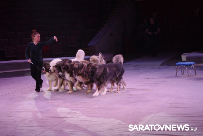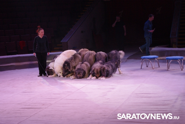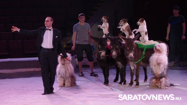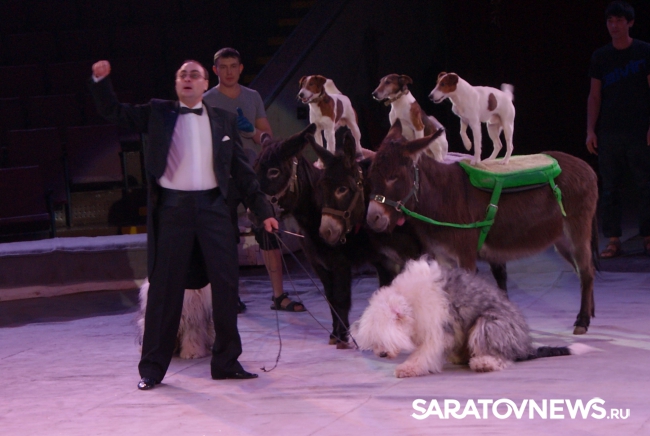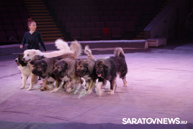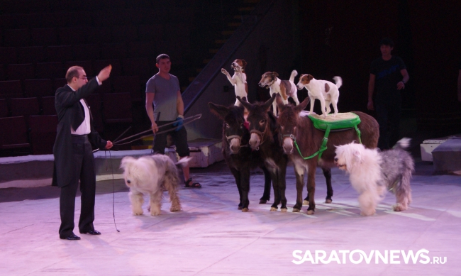 Юбилейная программа, в которой собрано сразу несколько легендарных аттракционов, будет работать на арене цирка им. Братьев Никитиных весь март вплоть до 5 апреля. В основном составе коллектива только молодые, но уже обладающие большим количеством наград артисты, а потому мастерство исполнителей не подлежит сомнению — их уже высоко и справедливо оценили знатоки циркового искусства! Один из таких титулованных и при этом представляющих именно новое поколение артистов жанра дрессуры — Дан Запашный, выступающий на манеже со своей воспитанницей и вполне равноправным партнёром — шимпанзе по кличке Мальта. Это надо видеть! Два акробата (один маленький, другой большой) выполняют серию кульбитов, кувырков, сальто-мортале, сложных поддержек и стоек на руках, рука в руку, голова к голове. Иными словами, шимпанзе не только исполняет трюки, которые демонстрируют мастера спорта на соревнованиях по акробатике, но во многом даже превосходит людей. Поразительное взаимопонимание человека и животного, отработанность каждого приёма, сложность завораживающей акробатики — вот что такое современная дрессура на практике в привезённой в Саратов программе. Марица выступает с огромными кавказскими овчарками, которые послушны не только жесту, но и буквально тихо сказанному слову, собаки все как одна выполняют предлагаемые дрессировщицей трюки. Кажется, что они всё делают с превеликой радостью, просто благоговея перед очаровательной, но строгой хозяйкой. Вообще в программе все животные способны исполнять довольно сложные телодвижения, все без исключения послушны, бесспорно, умны и благовоспитанны. Запашные, дрессировщики не в одном поколении, опираясь на многолетний опыт работы, считают, что не все животные способны стать настоящими артистами, а потому ведут тщательную селекцию и отбор, причём в приоритете отечественные особи, и лучше, если это будет потомство уже подтвердивших свой талант на манеже цирковых зверей.