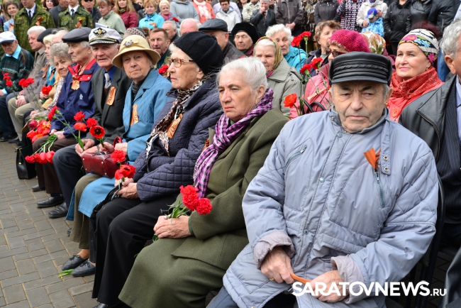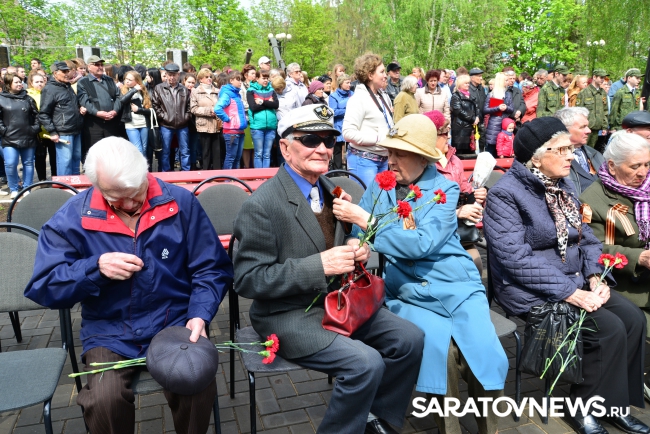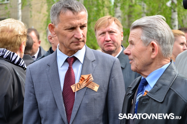 Валерий Радаев обратился со словами приветствия к ветеранам войны, труженикам тыла и всем жителям района. Он отметил большой вклад балаковцев в достижение Победы во время войны: на предприятиях изготавливались необходимые фронту двигатели, боеприпасы, судоремонтный завод восстанавливал и спускал на воду суда Волжской флотилии, жители села поставили 180 млн пудов хлеба. 14 тыс. балаковцев ушли воевать, и более половины из них погибли…