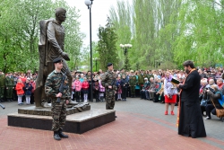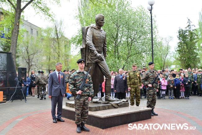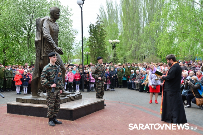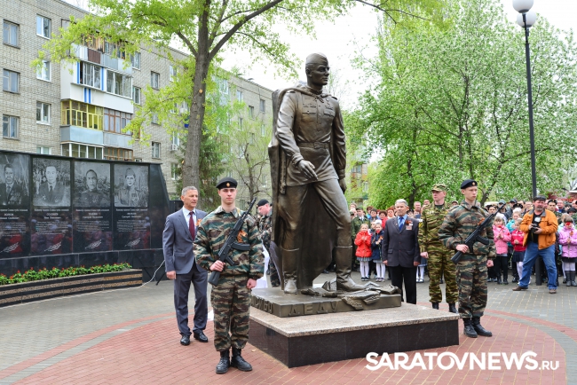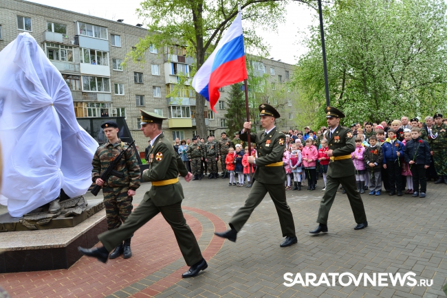 Чести открытия памятника удостоились глава администрации Балаковского муниципального района Иван Чепрасов, председатель объединенного совета ветеранов войны и труда района Пётр МУРЫГИН и директор МБУ «Центр «Набат» Сергей ВАСИЛЕНКО, которые и сняли покрывало, закрывавшее статую.