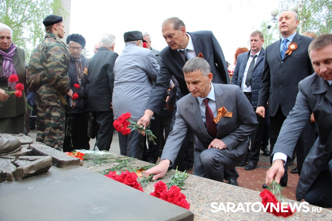 В заключение торжеств участники церемонии почтили светлую память всех безвременно погибших на войне балаковцев Минутой молчания и возложили цветы к монументу СолдатаПобедителя.