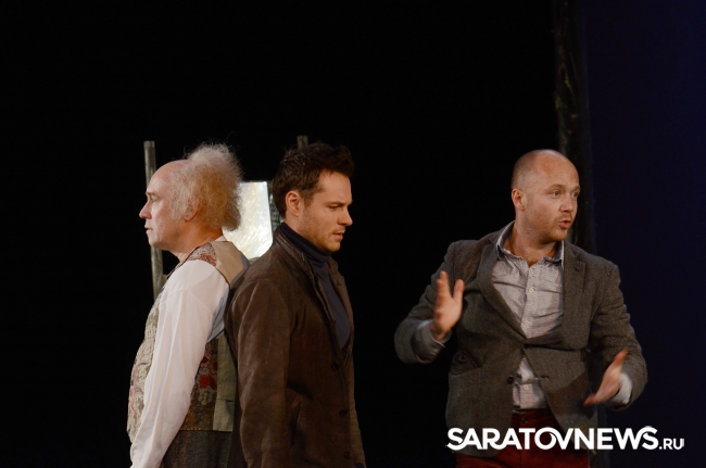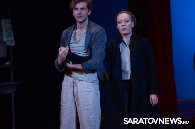 В ролях заняты сильные актёры: «старшего сына», студента Бусыгина, которого в фильме играл великий Николай Караченцов, исполнил Евгений ПРОНИН; широкого, неимоверно смешного и во многом всё-таки грустного авантюриста Сильву (в фильме, как мы всё помним, — сам Михаил БОЯРСКИЙ) блестяще сыграл Евгений СТЫЧКИН. В роли дочери Сарафанова Нины выступила Евгения КРЕГЖДЕ, в роли роковой соседки Натальи — Ольга ЛОМОНОСОВА. Работа актёров была по достоинству оценена благодарной саратовской аудиторией: по завершении действа зрители приветствовали артистов десятиминутной овацией, много раз вызывая исполнителей на поклон.