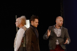 Виктор Сухоруков в сознании массового зрителя ассоциируется прежде всего с культовыми фильмами «Брат» (1997) и «Брат-2» (2000), где он сыграл разудалого, яркого, лихого персонажа — киллера Виктора Багрова. Виктор Иванович привёз в Саратов спектакль «Старший сын». Это постановка режиссёра Павла САФОНОВА по одноимённой пьесе Александра ВАМПИЛОВА. Аудитория знает этот драматургический шедевр по фильму 1975 г. Кто в неведении (если есть такие) — сюжет вкратце следующий. Двое молодых людей опаздывают на последнюю электричку и, оказавшись холодной ночью в незнакомом городе, пытаются найти ночлег. Проблема решается самым неожиданным и авантюрным образом: попав в дом музыканта Сарафанова, студент Владимир Бусыгин выдаёт себя за внебрачного сына хозяина дома. И Андрей Григорьевич Сарафанов, человек талантливый, щедрый, человек незадачливый и несчастный, вспоминает историю своей давней любви и… верит, что перед ним стоит сын той самой девушки, с которой давным-давно, сразу после войны, в Чернигове его связала больше чем дружба…